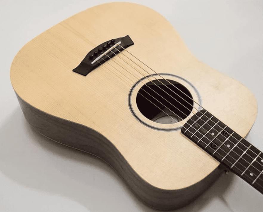 Гитара Taylor BT1 Baby Taylor Walnut в натуральной отделке с матовым покрытием обладает компактным корпусом размера 3/4, по форме напоминающим уменьшенный Dreadnought. Верхняя дека выполнена из массива ели, а спинка и обечайки — из ламината ореха. Такой подбор материалов формирует универсальное звучание с мощным основным тоном, который остаётся сфокусированным даже при агрессивной атаке. Кленовый гриф с тонким профилем позволяет легче удерживать струны для игры аккордов. Накладка из чёрного дерева оснащена верхним порожком Nubone, мензурой 22,75 дюйма и 19 ладами со вставками в виде точек из итальянского акрила.