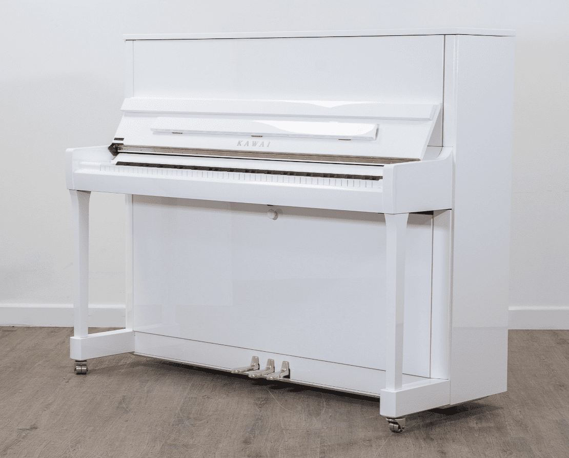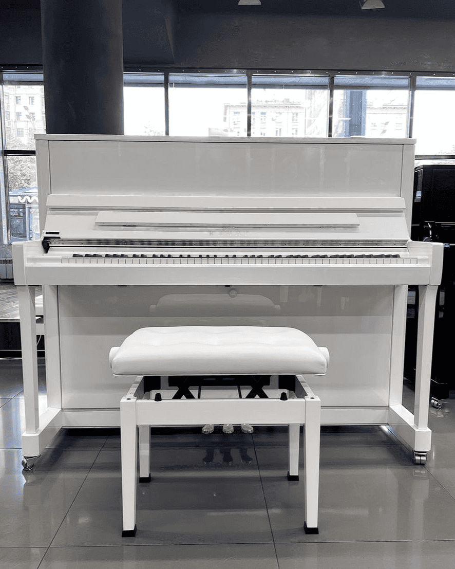 Вы можете купить акустическое пианино Kawai K300 WHHP в черном или белом полированном корпусе со строгим классическим дизайном. В нашем интернет-магазине к инструменту бесплатно прилагается банкетка или стул для фортепиано на выбор, а также настройка.
