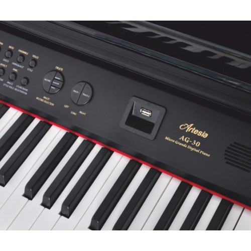 Если вы всегда хотели иметь собственный рояль, но вас останавливала высокая цена и ограниченное пространство, тогда Artesia AG-30 вам подойдет. Это элегантный, отполированный вручную черный цифровой рояль, созданный в классическом стиле. Выразительная технология сэмплирования Supra Sound предлагает реалистичные фортепианные звуки и динамическое прикосновение к естественно сбалансированной молоточковой клавиатуре, которая удовлетворит требования, как исполнителя, так и его учителя. Кроме того, Bluetooth подключение позволяет воспроизводить композиции от смартфона/планшета через шесть динамиков. Плюс ко всему включены функции для обучения через приложения для разных возрастов и уровней навыка, таким образом, все члены семьи смогут насладиться и научиться играть на фортепиано. Artesia AG-30 потрясающе красивое дополнение к вашей жилой зоне, которое станет центром любого домашнего декора.