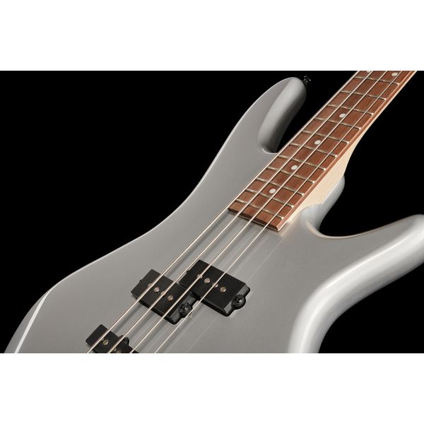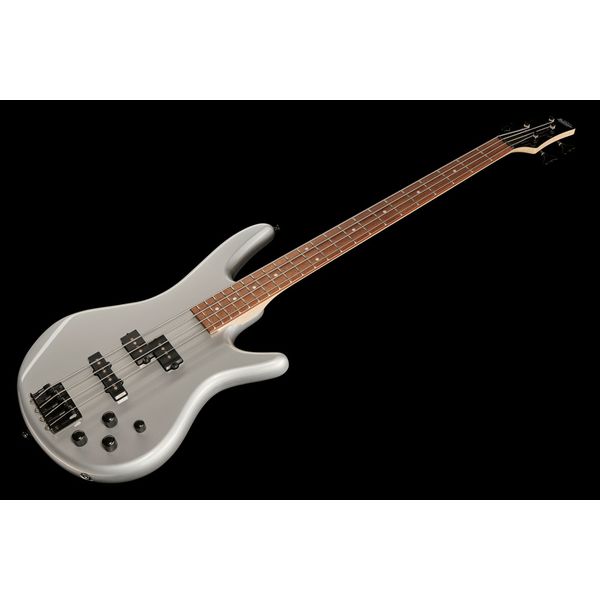 Бас-гитара Ibanez 70th Anniv. GSR200-SV в отделке Silver имеет корпус из ньятона с двумя вырезами для удобного доступа к верхнему регистру. Кленовый гриф с профилем GSR4 соединён с кузовом болтами. Накладка из ятобы Purpleheart оснащена радиусом 12 дюймов, 34-дюймовой мензурой и 22 средними ладами со вставками в виде белых точек.
