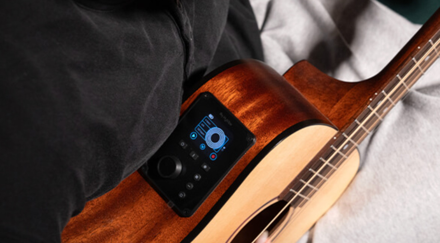 HyVibe H2 — ваш персональный музыкальный помощник. С революционным предусилителем HyVibe H2 ваша акустическая гитара превращается в современный интеллектуальный инструмент. Помимо таких эффектов, как реверберация, хорус, задержка, тремоло, октавер, фейзер и дисторшн, вы также найдете лупер, тюнер и метроном. Совместимость с Bluetooth позволит вам без труда импровизировать под любимые фонограммы. Кроме того, мобильное приложение HyVibe позволяет создавать собственные банки эффектов и точно настраивать звучание вашей гитары. Встроенный литий-ионный аккумулятор обеспечивает до десяти часов непрерывной игры на одном заряде и удобную зарядку через порт USB-C на панели выходов, которая также оснащена стандартным разъемом jack, аудиовходом TRS 3,5 мм и выключателем питания.