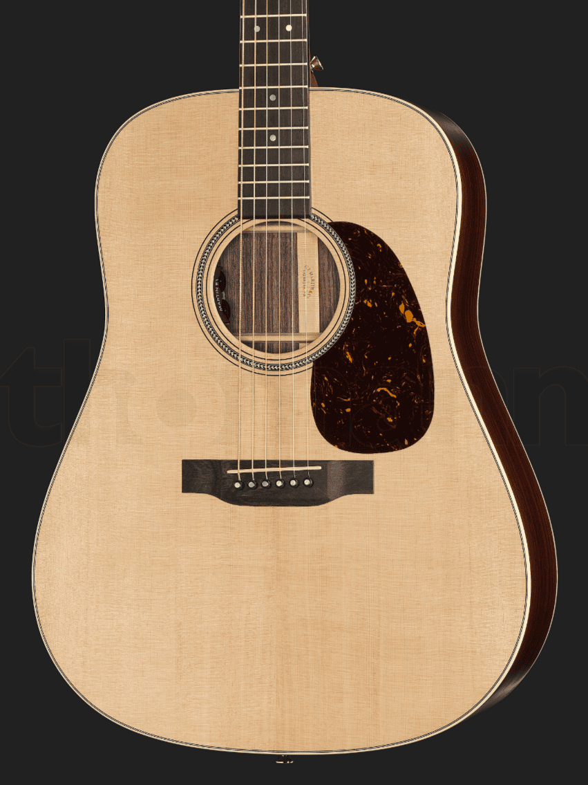 Гитара Martin Guitars D-16E-01 в натуральной отделке имеет корпус в форме Dreadnought для объёмного и громкого звука. Верхняя дека изготовлена из ели, а спинка и обечайка — из восточноиндийского палисандра. Гриф из древесины твёрдых сортов имеет профиль Modified Low Oval и соединён с кузовом креплением «ласточкин хвост» на уровне четырнадцатого лада. Накладка из чёрного дерева оснащена мензурой 25,4 дюйма, верхним порожком из кости шириной 44,45 мм и 20 ладами с перламутровыми вставками Style 28.