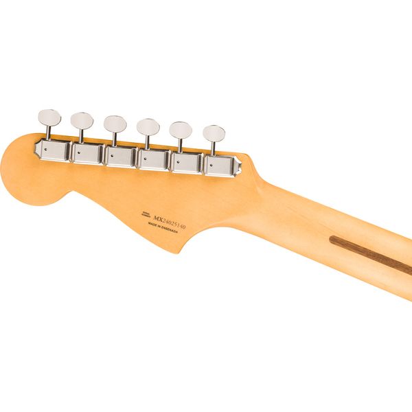 Два сингла Player Series Jazzmaster с магнитами Alnico 5 воспроизводят чистые высокие тона, музыкальные средние частоты и плотные басы, подходящие для любого жанра. Управление звуком возможно через 3-позиционный переключатель датчиков, ручку громкости и регулятор тона. Модель дополнена верхним порожком из искусственной кости, белыми маркерами на боковой части грифа, колками Fender ClassicGear, бриджем Jazzmaster с сёдлами Mustang, 3-слойным пикгардом цвета пергамента, а также никелированной и хромированной фурнитурой.