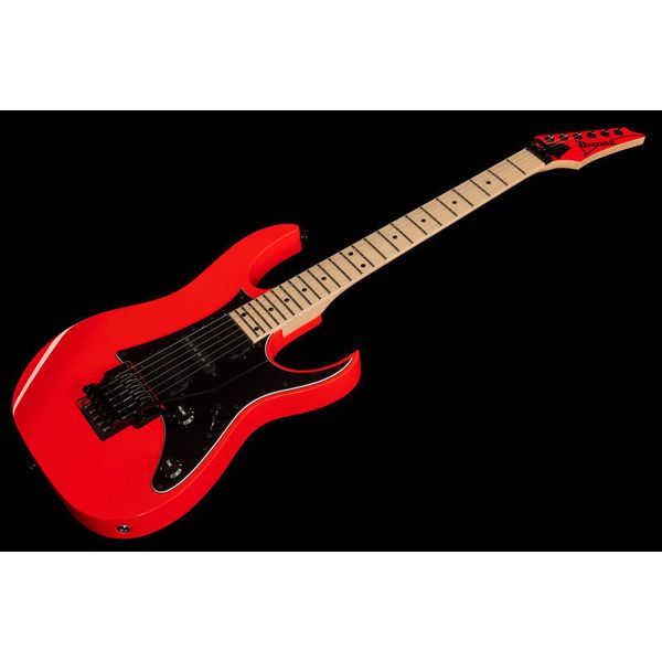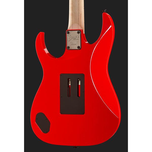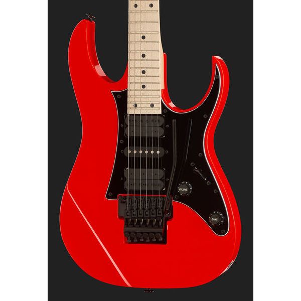 Гитара Ibanez RG550-RF в яркой отделке Road Flare Red обладает корпусом из липы в стиле Superstrat, украшенным контрастным чёрным пикгардом. Более заострённые «рога» и глубокие вырезы делают доступ к верхнему регистру комфортным. Гриф с профилем Super Wizard состоит из пяти частей клёна и ореха и гарантирует плавность игры. Кленовая накладка оснащена плоским радиусом 16,9 дюйма, универсальной мензурой 25,5 дюйма и 24 ладами со вставками в виде чёрных точек.
