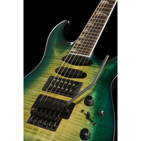 Звукосниматели Seymour Duncan Cool Rails и Seymour Duncan JB. Ручки мастер громкости с треблблидом и тоном, переключатель отсечки на бридж. Инструмент дополнен Floyd Rose 1000 тремоло, литыми колками, черной фурнитурой. В комплект не входит чехол и кейс.