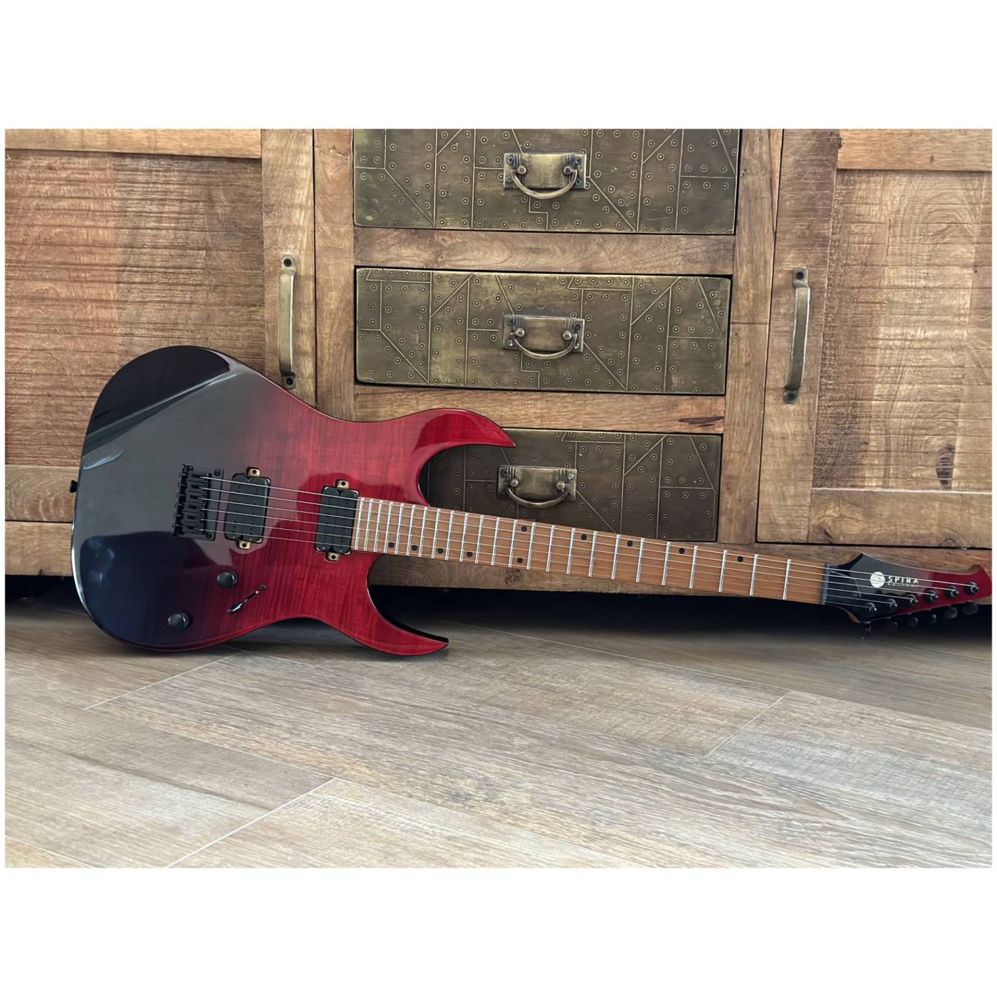S-450 оснащена изготовленным на заказ хамбакерами Villain™ от Spira, которые обеспечивают мощные и артикулированные тона, идеально подходящие для жанров рок и метал. Фиксированный бридж и черные локовые колки обеспечивают исключительную стабильность и точность настройки.