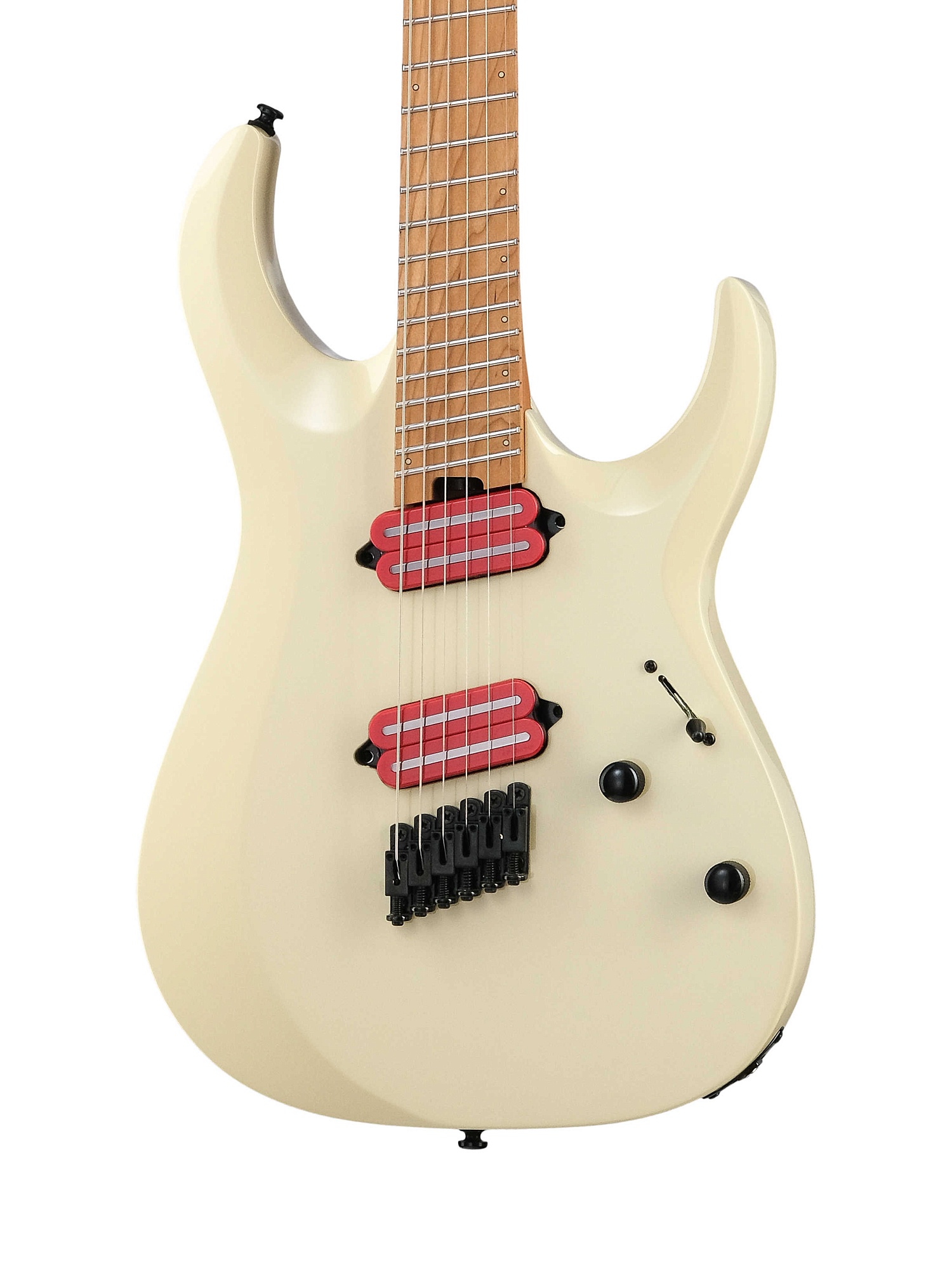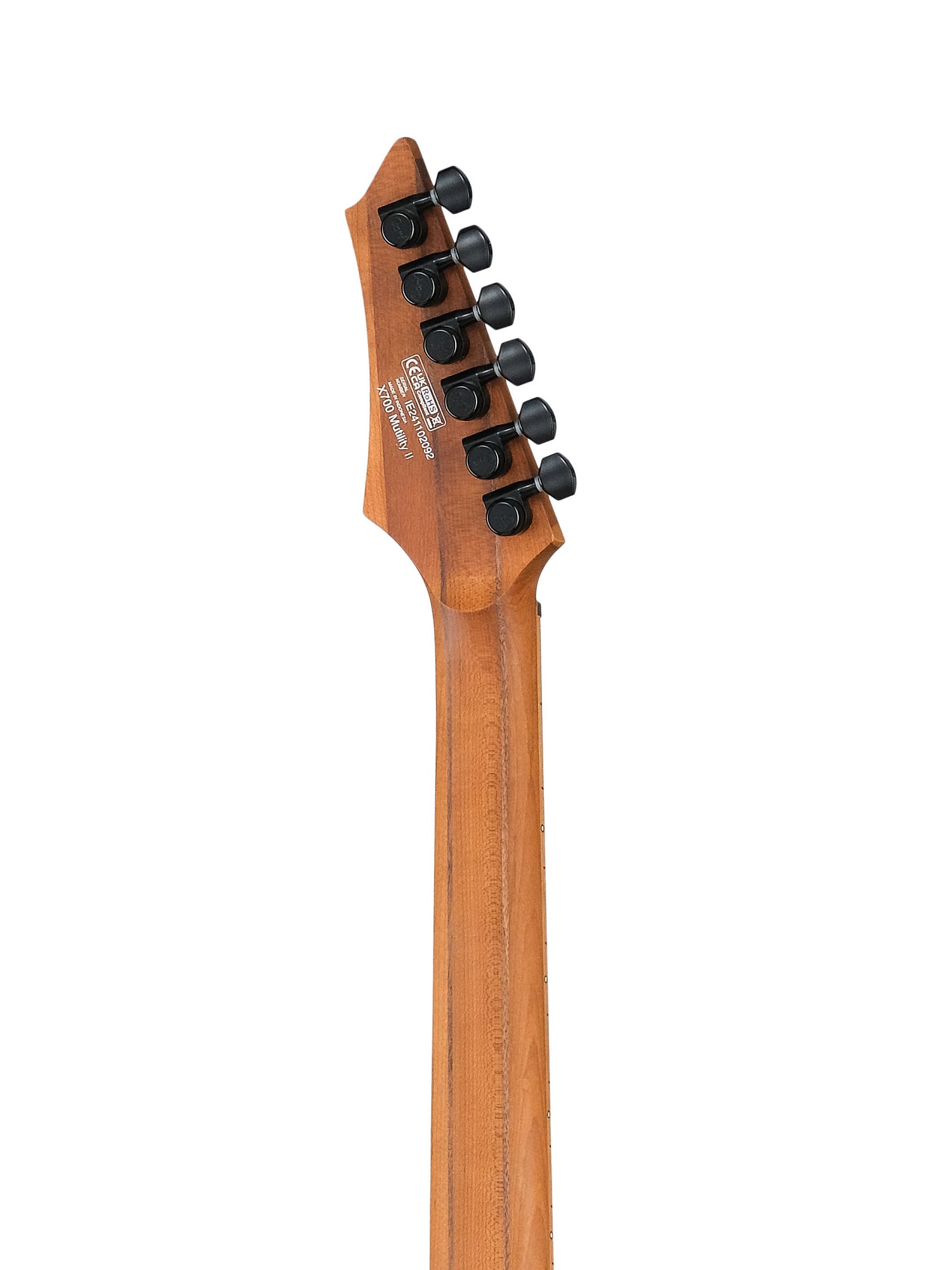 Усовершенствованная конструкция, мензура 25,0 дюймов на более высоких струнах и 25,5 дюймов на басовых струнах. Такой дизайн уменьшает наклон ладов, повышает комфорта и удобство игры при сохранении идеального натяжения струн. Он предназначен для современных гитаристов, которые изучают низкие строи или сложные риффы, обеспечивая универсальность и отзывчивость.